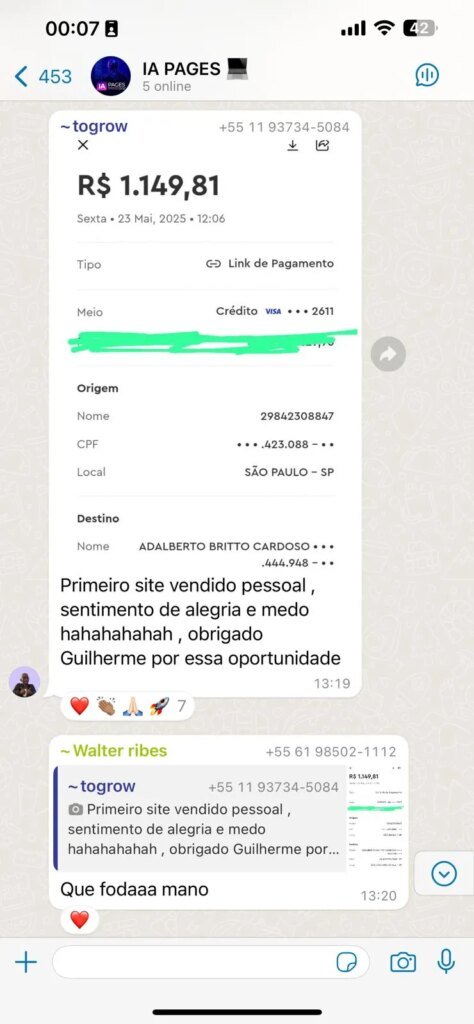 Com as páginas criadas pela IA, você pode publicar e começar a vender no mesmo dia. Nossos alunos relatam as primeiras vendas já na primeira semana. O sistema é rápido porque elimina meses de aprendizado – você pula direto para os resultados.
